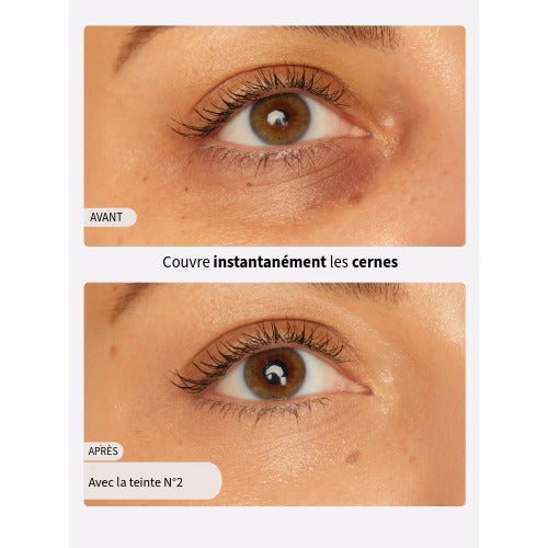Une texture crème qui fond sur la peau, des teintes étudiées pour camoufler sans se voir, et un regard qui a l’air plus frais dès la première application.